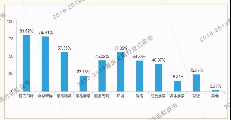 據(jù)調(diào)查,鍋底口味是消費(fèi)者是否復(fù)購(gòu)的決定性因素,說明味道乃生存之本。對(duì)食材新鮮和菜品種類的要求的增加,說明市場(chǎng)消費(fèi)理念也在逐漸轉(zhuǎn)變。